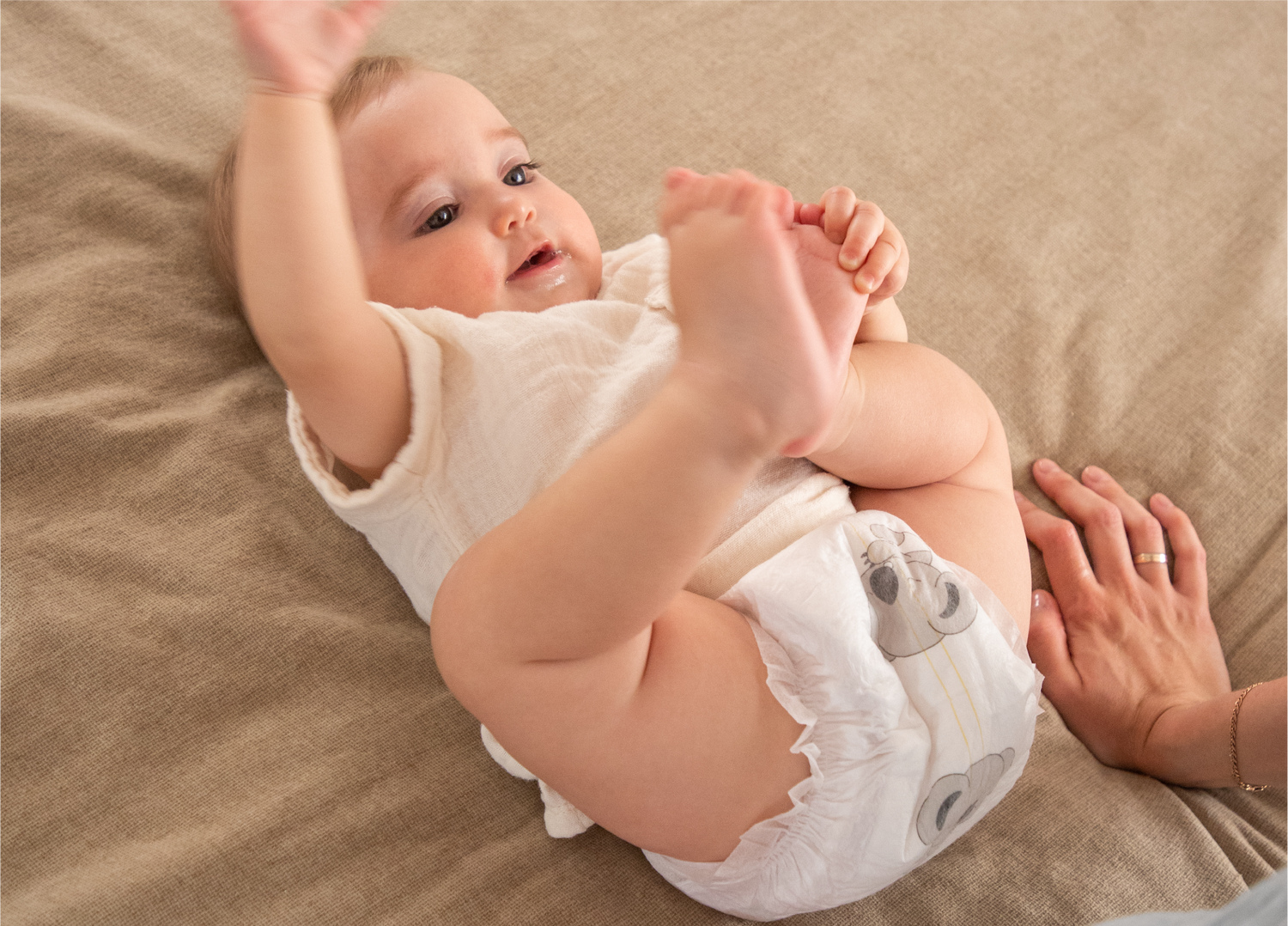 Un solo paso: una toallita nube de fibra vegetal, con doble textura y extracto de aloe calmante. Extra grande para los desastres, suave y delicada para la piel del recién nacido. Sin tóxicos, sin desperdicio — limpia con ternura, besa y abraza.