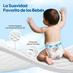 Fabricados con fibras naturales premium, nuestros pañales ofrecen el mejor cuidado para la piel delicada de tu bebé. Con una rehumectación ultra baja, dile adiós a la irritación.