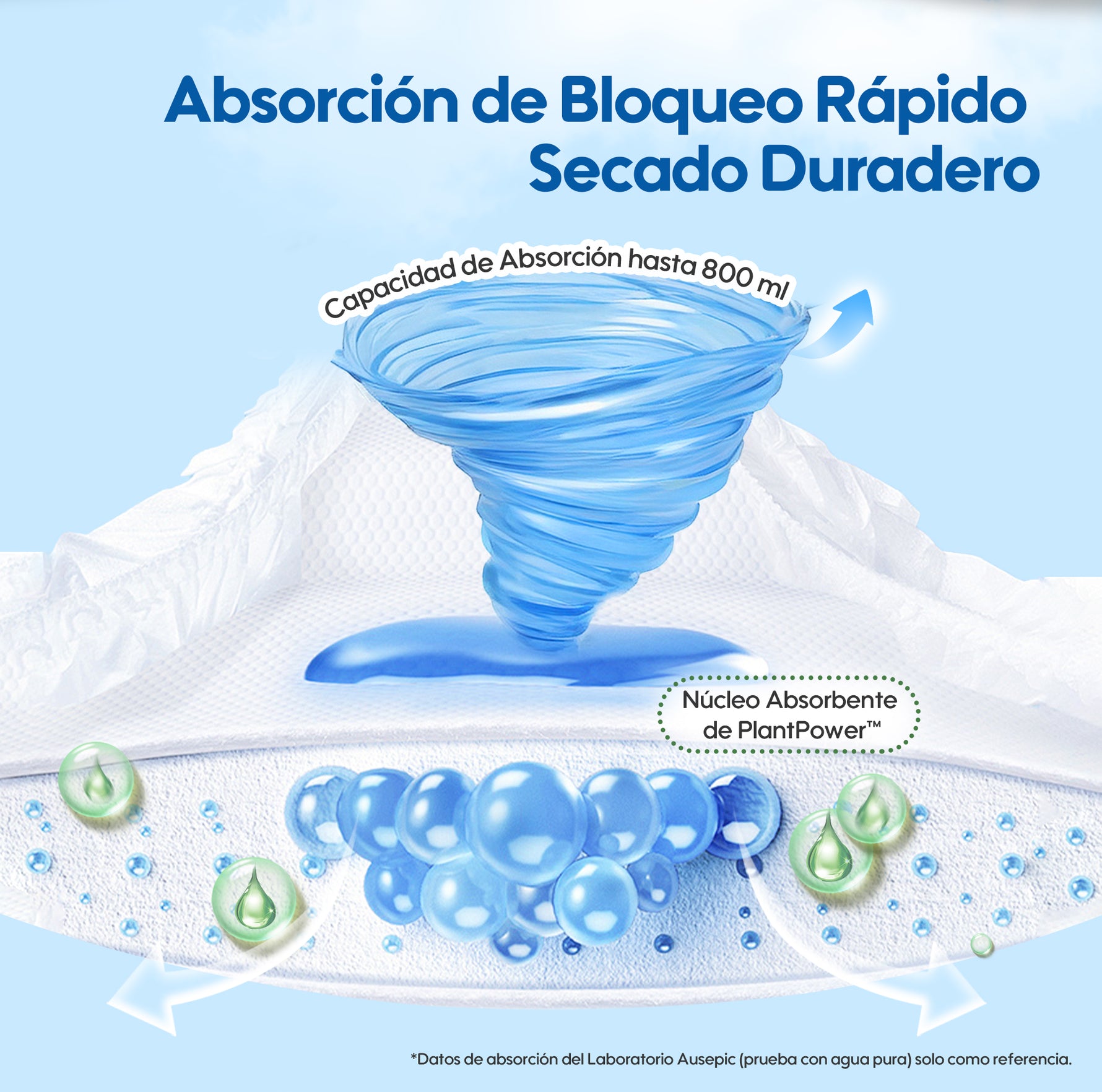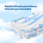 La capa de canalización rápida dirige rápidamente el líquido al núcleo de absorción, garantizando una absorción rápida para mantener la piel de tu bebé seca y reducir significativamente el riesgo de dermatitis del pañal.