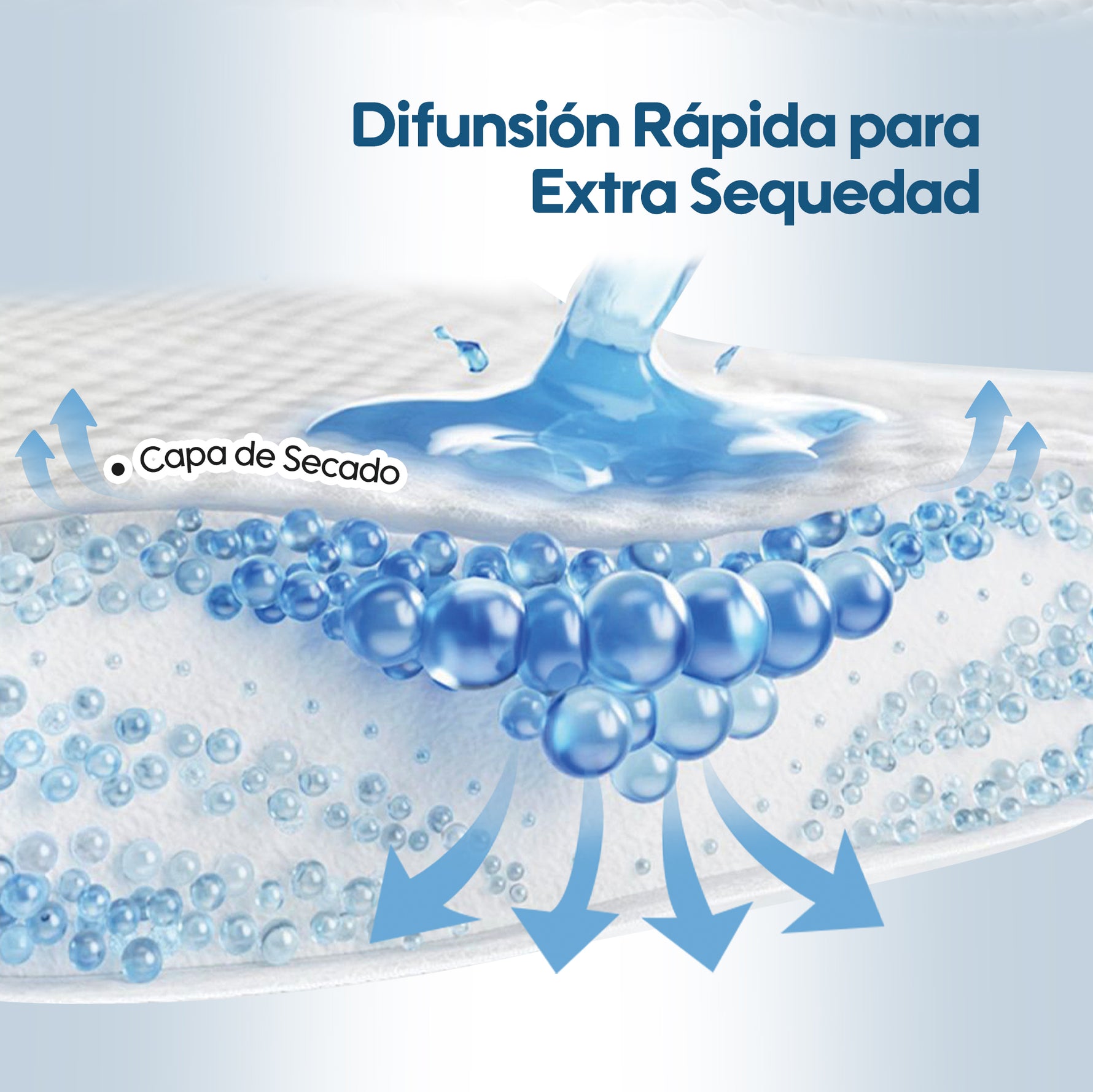 La capa de canalización rápida dirige el líquido hacia el núcleo de absorción, asegurando una absorción rápida para mantener la piel de tu bebé seca y reducir significativamente el riesgo de rozaduras.