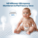 Fabricados con SAP de Sandia (Japón) y pulpa de madera de Weyerhaeuser (EE. UU.), ofrecen una absorción superior que mantiene la piel del bebé seca y fresca, permitiéndole moverse libremente sin restricciones.
