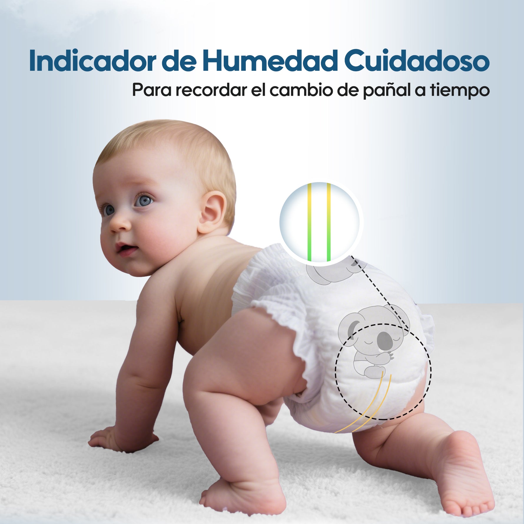 Cambia de color de amarillo a verde cuando está húmedo, proporcionando una forma rápida y fácil de saber cuándo es momento de cambiarlo.