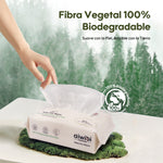 Nuestras toallitas secas están hechas de fibras vegetales 100 % naturales, suaves y no irritantes, lo que las hace aptas para la delicada piel de los bebés. Este material, totalmente ecológico, se degrada de forma natural, reduciendo así la carga ambiental. Así, podrás cuidar de tu bebé y, al mismo tiempo, cuidar del planeta.