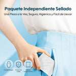 El empaque aluminizado con cierre reutilizable permite volver a sellarlo después de abrirlo, facilitando el almacenamiento higiénico de las toallas restantes.